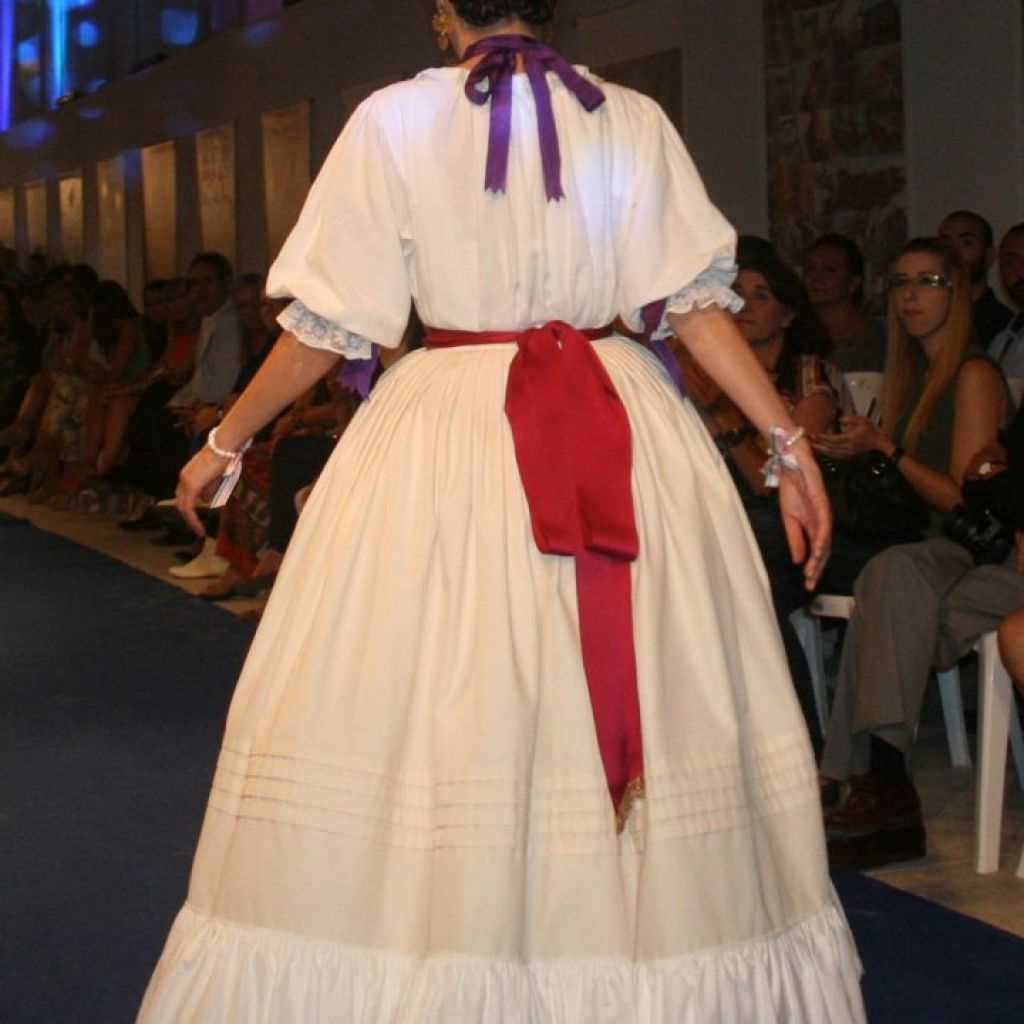 La Camisa es la primera prenda que se colocaba la mujer, se confeccionaba en cáñamo o lino. Consta de una pieza que cubre desde los hombros hasta por debajo de las rodillas con vuelo en la parte baja, conseguido mediante unas nesgas laterales. Lleva manga corta hasta el codo y amplio escote generalmente cuadrado. El escote y las mangas solían hacerse con lienzo más fino y podían ir ornamentados con puntillas.