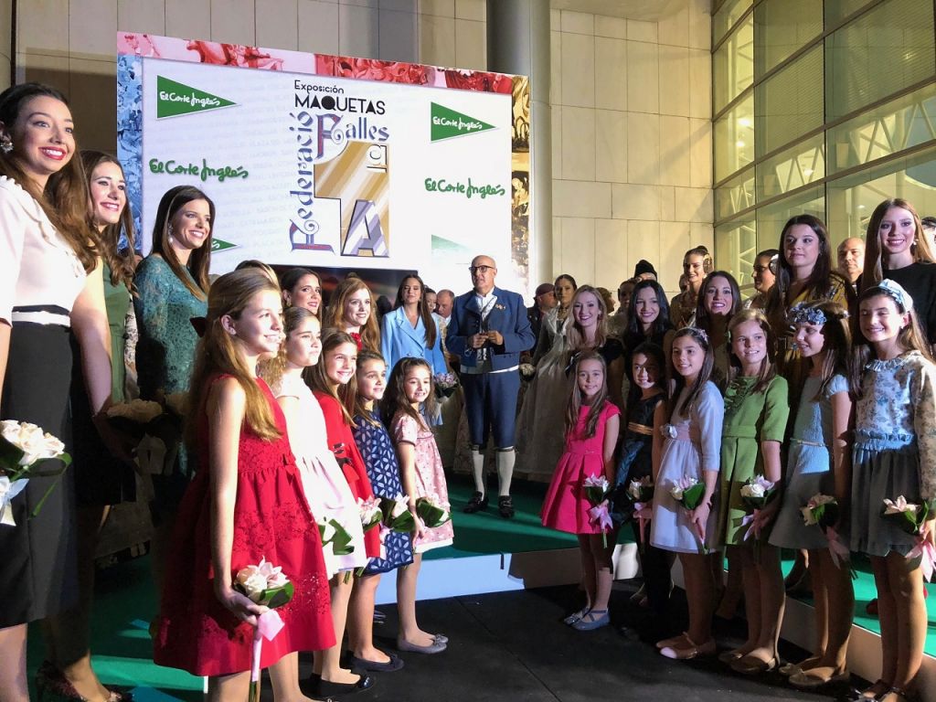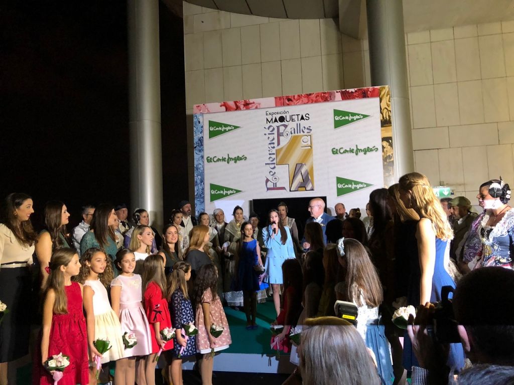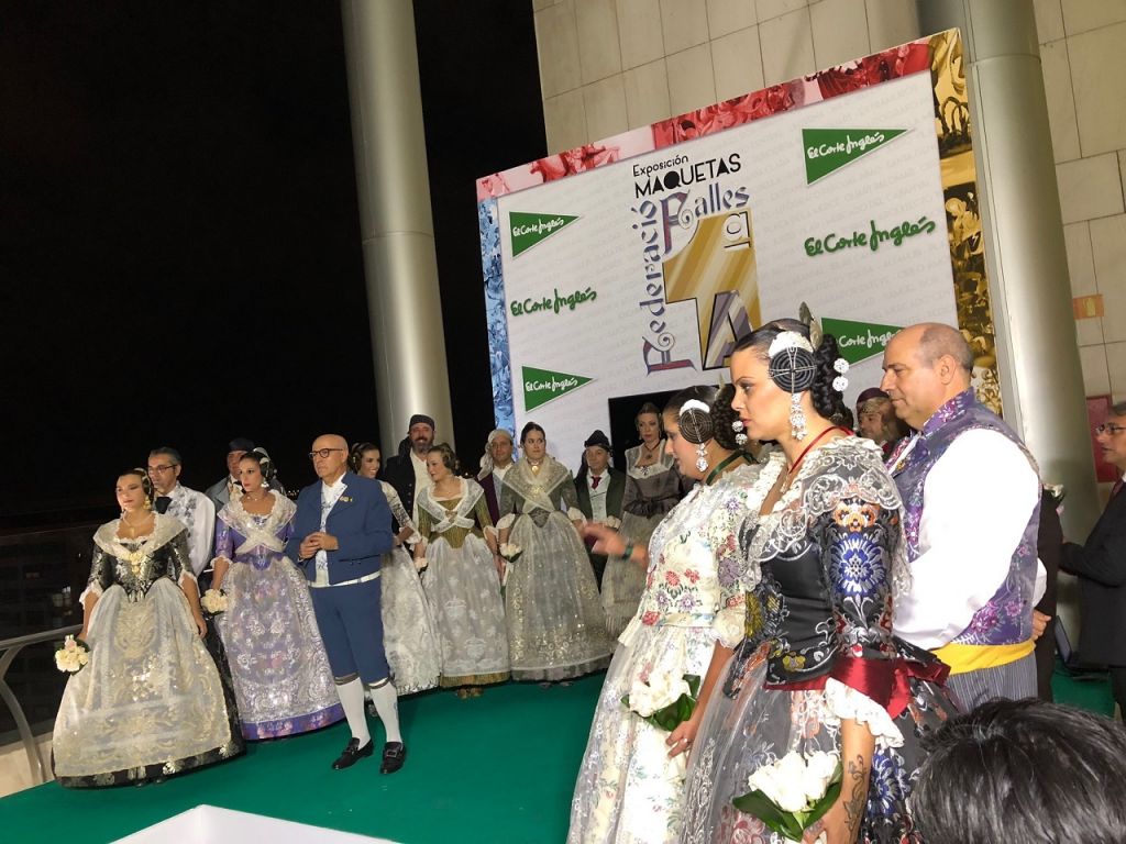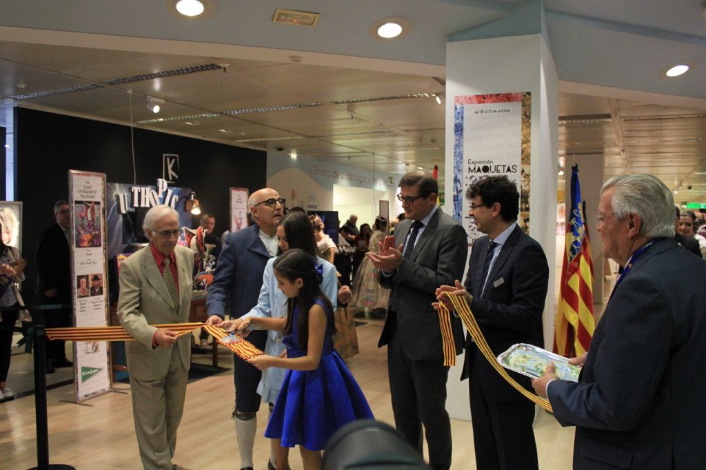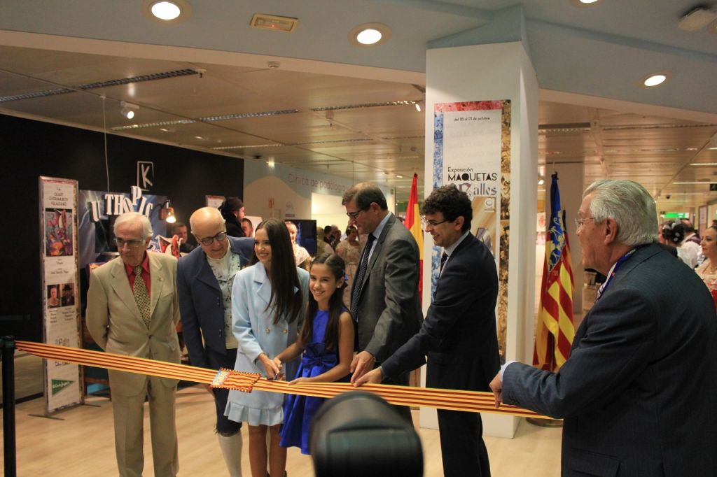El acto se trasladó de sala para llegar a la inauguración de la exposición de bocetos y maquetas. Marina y Sara cortaron la cinta con los colores de la Senyera, y se abrió este espacio, que se puede visitar hasta el martes 23 de octubre a las 20:00 h en el Ámbito Cultural de El Corte Inglés de la avenida Francia, en la octava planta.