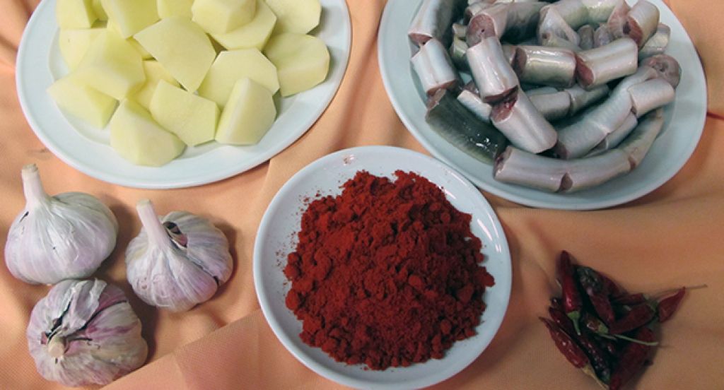 Ajo, pimentón, patata, anguila, guindilla y agua serian los ingredientes principales de este manjar originario de los pescadores que habitaban los pueblos situados a orillas de este hermoso lago como El Palmar o Catarroja donde sitúa la historia el origen de este plato.