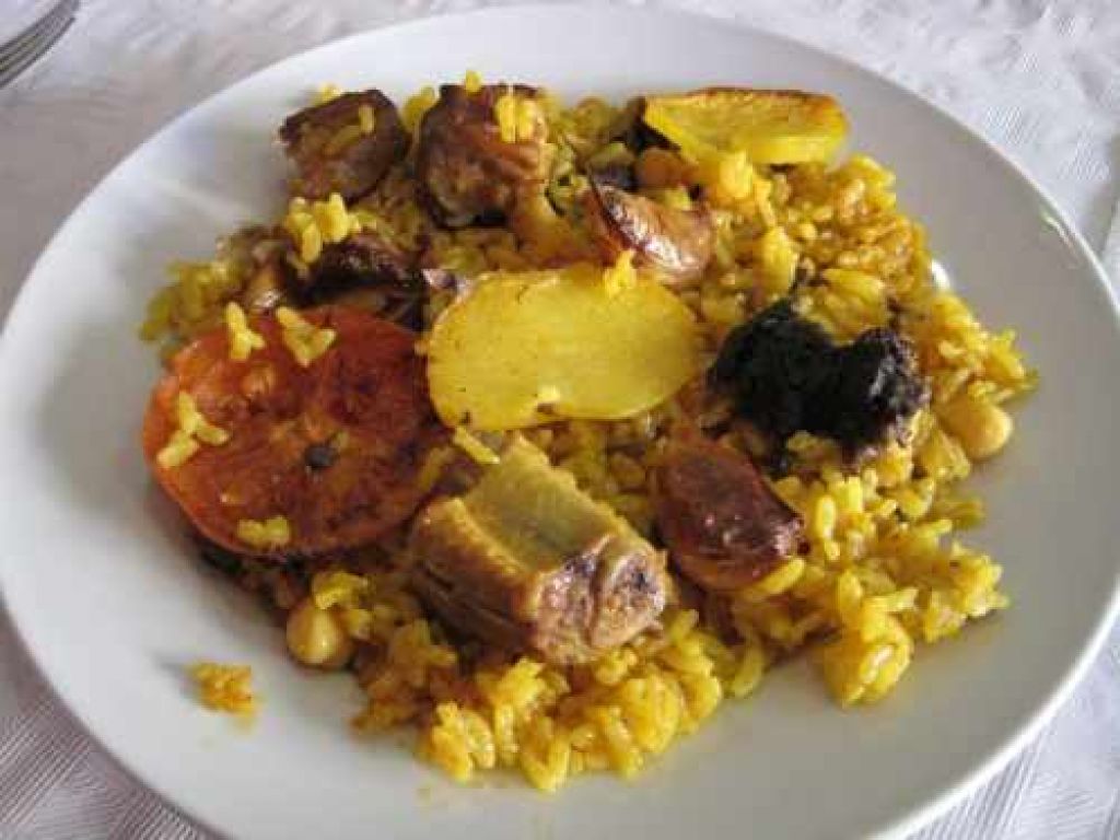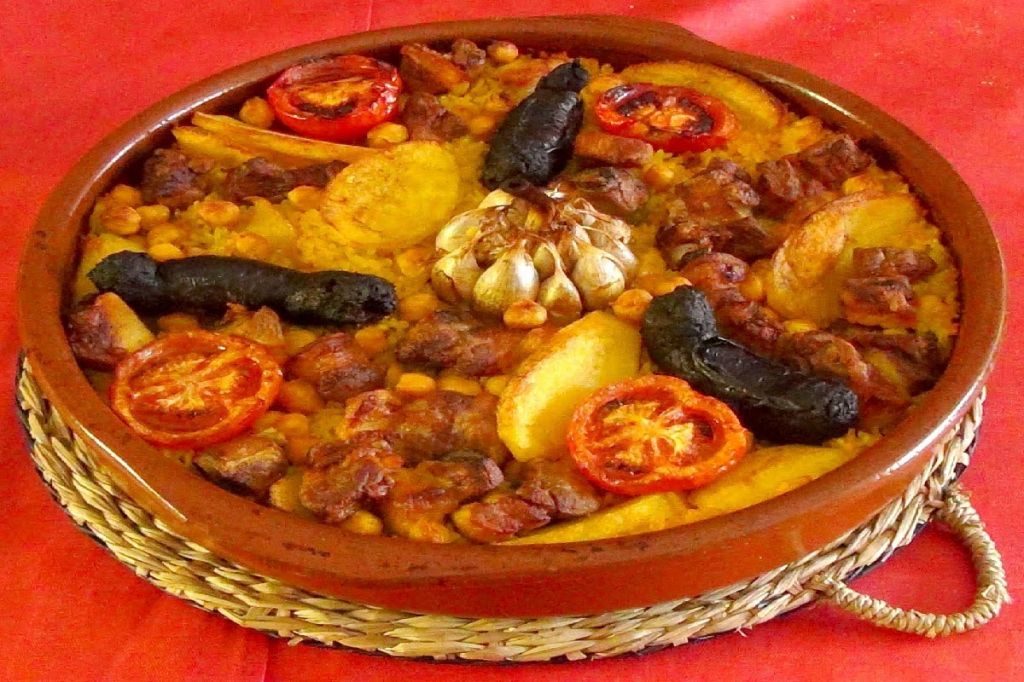 Esta es una receta muy popular en toda la comunidad valenciana y probablemente una de las más desconocidas para todos ustedes, esta receta tiene un muy marcado carácter moruno sus principales ingredientes serian por supuesto un buen arroz valenciano, costillas de cerdo, garbanzos, panceta, morcillas de carne, patata, tomate, ajos, azafrán, aceite de oliva, sal, y un buen caldo de cocido. Todo ello cocinado en una buena cazuela de barro y si se pudiera en un horno de leña pues evidentemente mucho mejor.