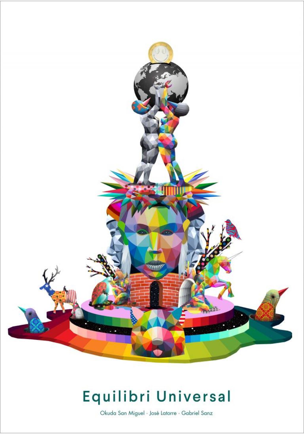 La propuesta para la Falla Municipal Grande de 2018 incorpora al lenguaje de las Fallas códigos visuales del arte contemporáneo, con la colaboración directa de Okuda, quien propone “reflexionar con ironía sobre la pirámide de valores que sustentan la sociedad actual”. Lo hace con una escultura forma de tótem y una estructura que propone un recorrido entre lo imaginado y lo real, y una reflexión sobre como el dinero rige la existencia humana. Okuda participará en la plantà de la Falla grande, pintando in situ algunas de las partes principales del monumento.