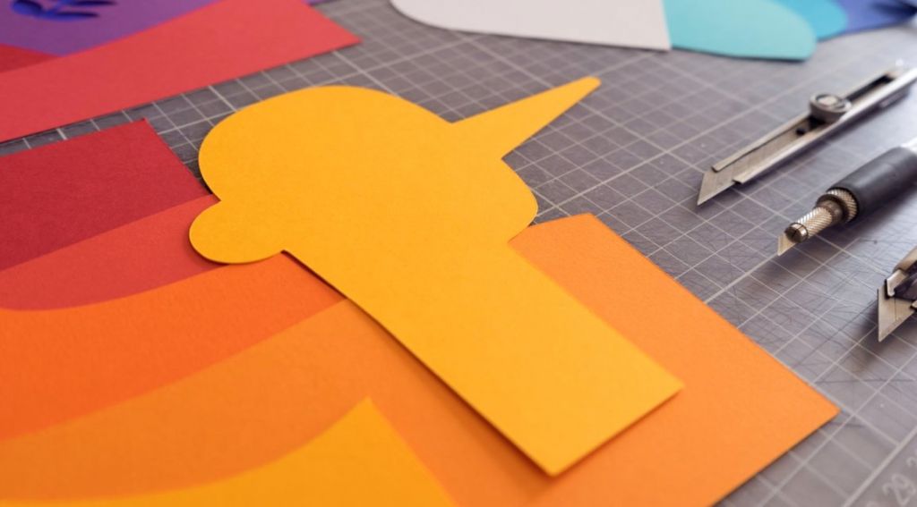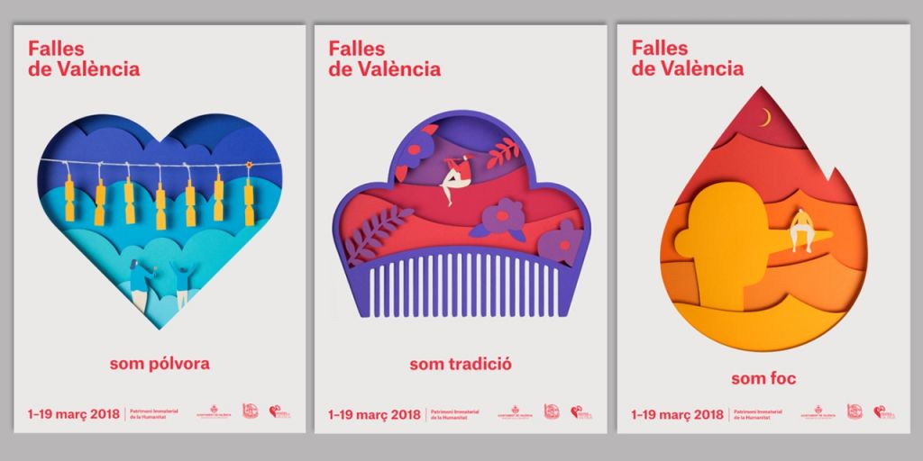 Otra característica importante de la campaña gráfica es el color, los materiales y el trabajo artesano. Hecho que inspiró a las diseñadoras para meterse en la piel del artista fallero y crear así las escenas artesanalmente con papel y una gama cromática con 18 colores diferentes.