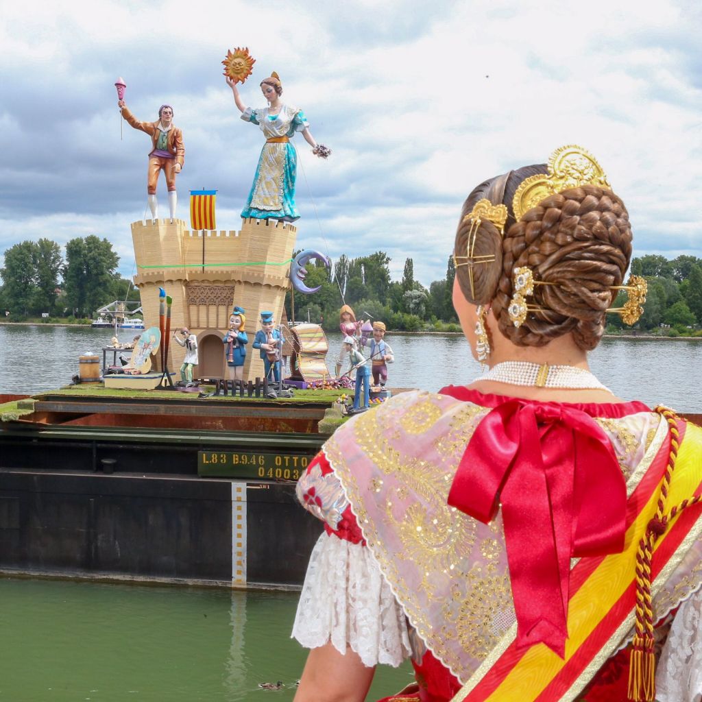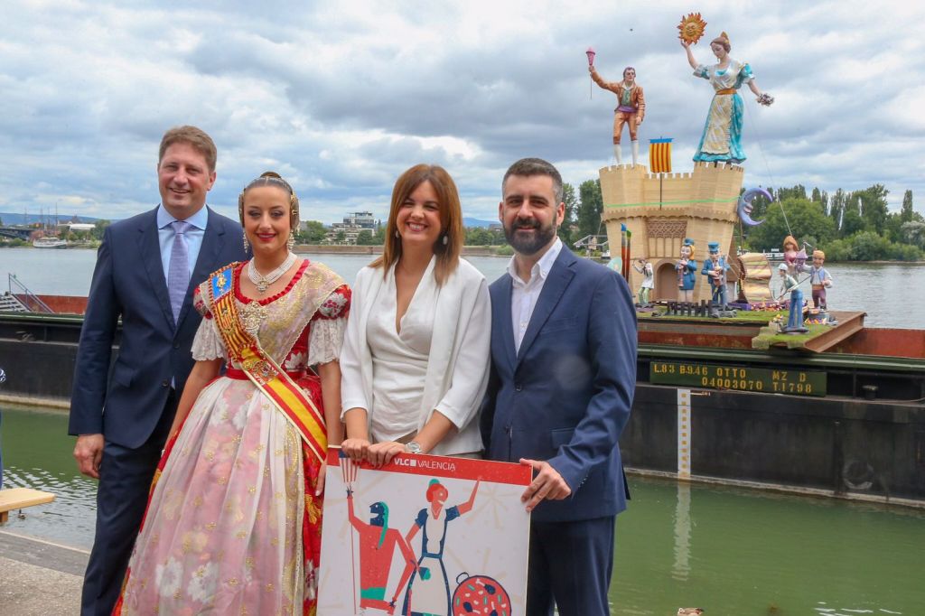 Así, las Fallas han estado presentes en Mainz durante todo el Festival gracias a un monumento, de vareta y cartón-piedra, obra del artista fallero Ximo Esteve. El monumento ha permanecido sobre una plataforma flotante a orillas del río Rhin desde el jueves 21, y será quemado, esta noche, minutos antes de los fuegos artificiales que tradicionalmente se disparan en Mainz el 25 de junio y que reúnen a más de 70.000 espectadores. Se estima que cerca de 500.000 personas han visitado el monumento de Esteve.