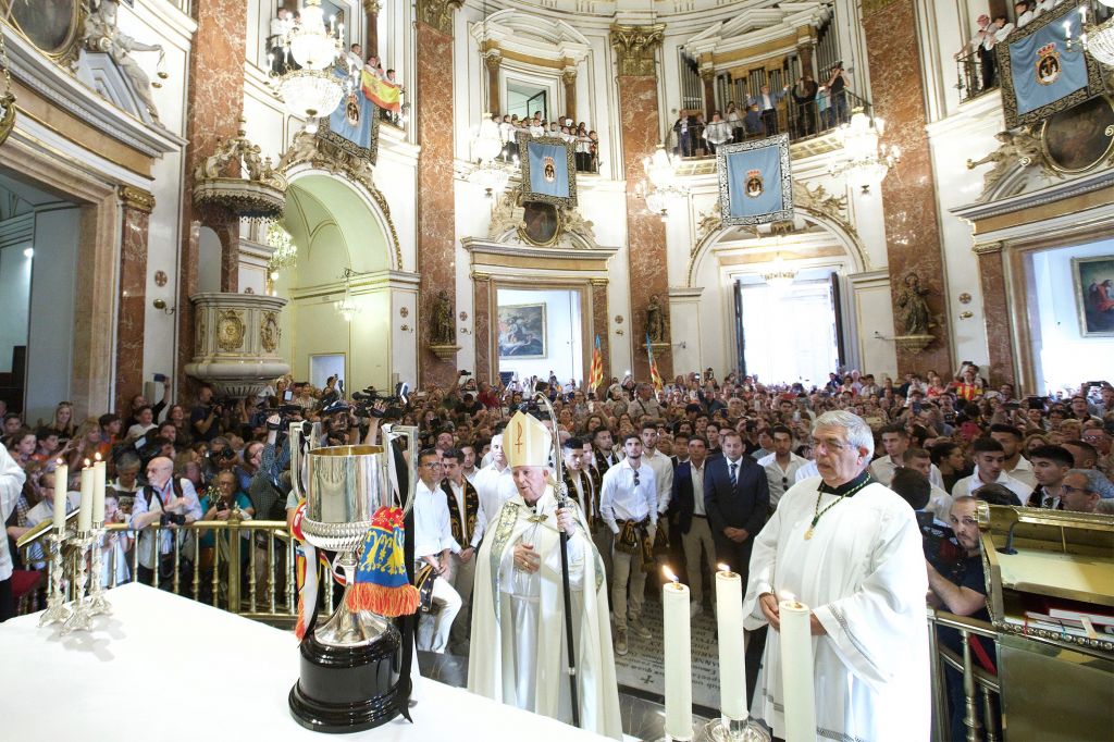 “Es una alegría muy grande en todos los sentidos, porque os sentis valencianos, hijos de esta madre tan buena que es la Virgen de los Desamparados”, ha continuado el Cardenal que ha añadido que “en esta ofrenda depositáis a los pies de vuestra madre todo el esfuerzo de esta temporada” y ha recordado que “no sólo en Valencia sino en todas partes se alegran de vuestro triunfo”.