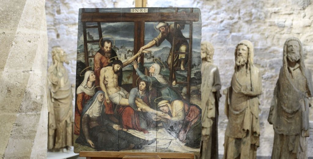 Se trata de un óleo sobre tabla de 98'3 cm de alto y 85 cm de ancho, que representa el descendimiento de la Cruz y “cuya procedencia, así como su autoría aún son una incógnita por resolver”, según ha explicado la restauradora, Rosa Román, quien ha señalado que, a pesar de haber sido atribuida a varios autores según diferentes historiadores “lo único seguro es que el autor tuvo relación con el círculo pictórico de Juan de Juanes y sobre todo conocía muy bien su obra, pues se trata de una copia exacta, de la tabla del Descendimiento , de Juan de Juanes, que se encuentra en el Museo de Bellas Artes de Castellón”.