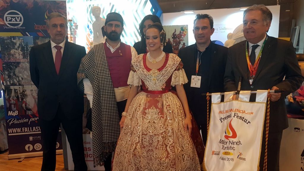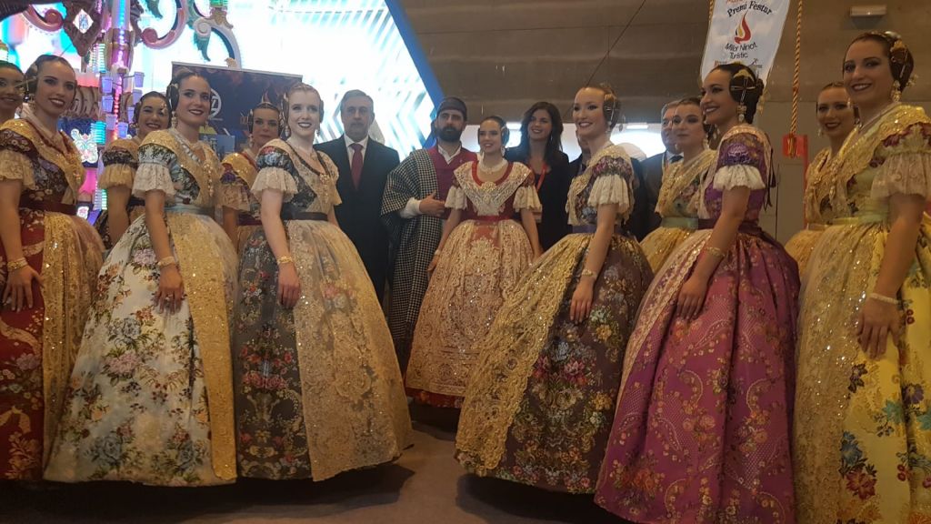 La Fallera Mayor de València, Marina Civera, acompañada por su Corte de Honor, hizo de madrina de este premio en Fitur en el transcurso de un acto en el que participaron los concejales Sandra Gómez, Primera Teniente de Alcalde y Concejala Delegada de Turismo, y Pere Fuset, Concejal Delegado de Cultura Festiva y Presidente de la Junta Central Fallera. Junto a ellos el Director del Grupo Editorial M4B, Roberto Torres, el Presidente y Secretario de FOTUR, Víctor Pérez y Juanjo Carbonell, respectivamente y los presidentes de la Federación de Fallas de Especial, Santiago Ballester y de la Federación de Fallas de Primera A, Paco Romero.