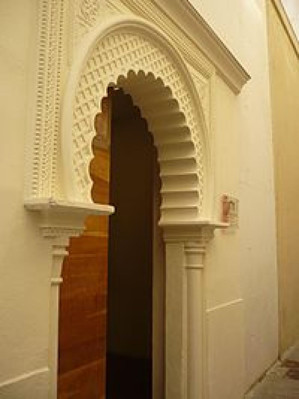 Su entrada fue reconstruida en el siglo XIX y, en la actualidad cuenta con un arco de herradura.