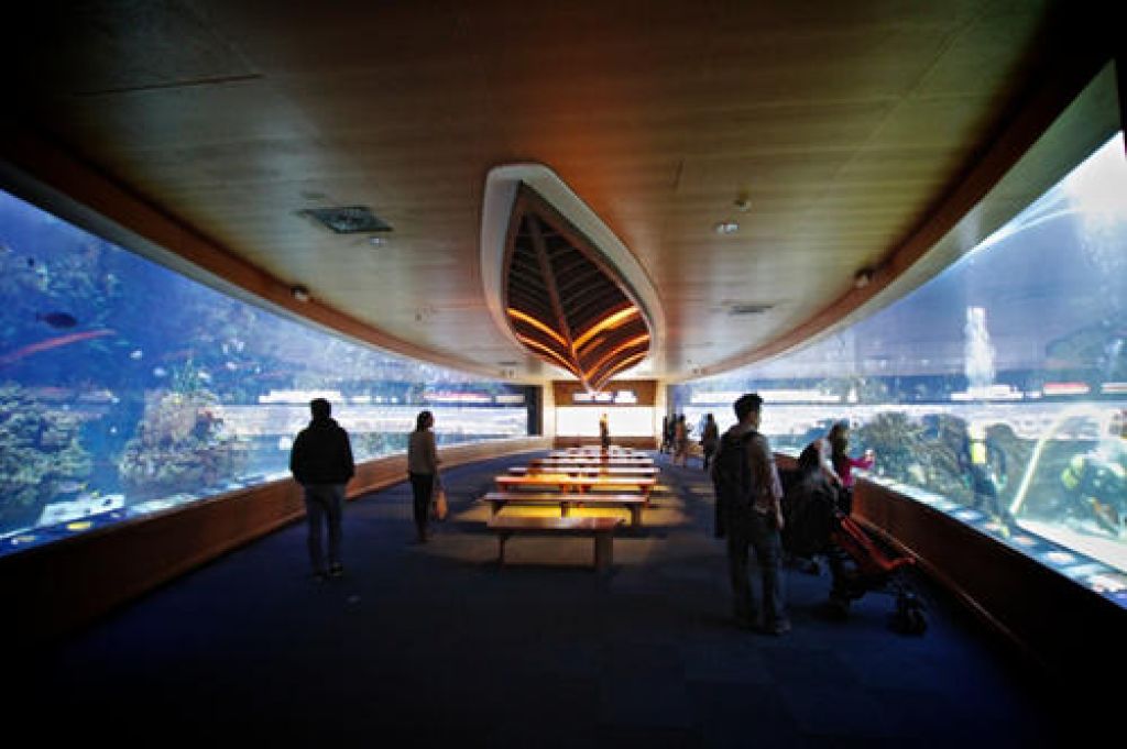 El diseño estructural de las cubiertas es de los ingenieros Alberto Domingo y Carlos Lázaro. Se representan los principales ecosistemas marinos del planeta.